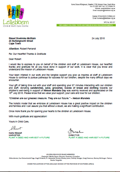 To read more about the amazing work that they do please visit their website www.leliebloem.org.za.